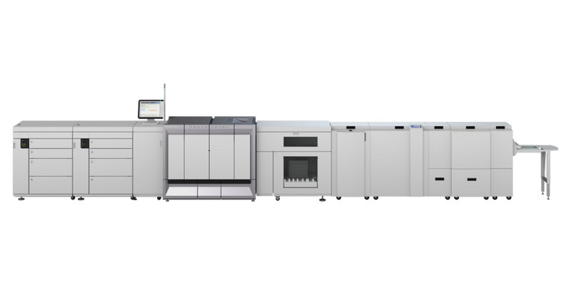 Several optional modules can be added or linked together to offer a flexible online solution: Face trimmer module Two-knife trimmer module for top- and bottom-edge trimming Square-spine forming module Rotator module for full printer speed with smaller booklet sizes Power stacker provides enlarged output capacity