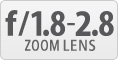 • Bright f/1.8-2.8, 28mm, 5x zoom lens