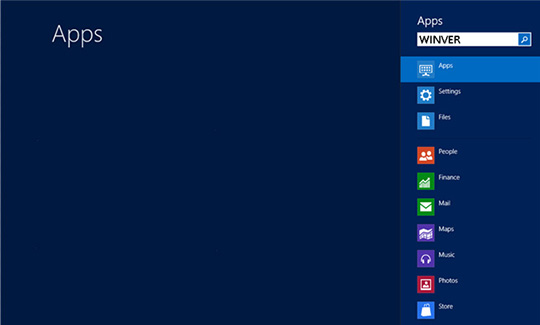 1.When on the home screen start typing the word WINVER and you will see a search bar appears from the right of the screen.