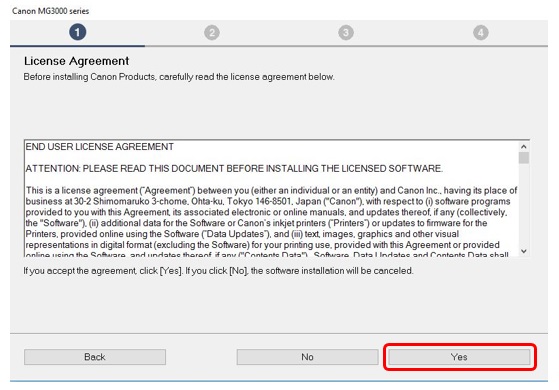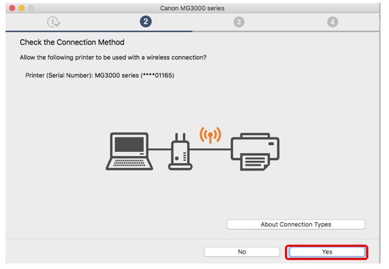 9. If your printer has already been connected to your wireless network, you will see the following screen. Click [Yes] to continue with the installation and jump to step 17. If your printer has not yet been connected please continue to step 10.