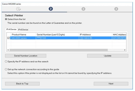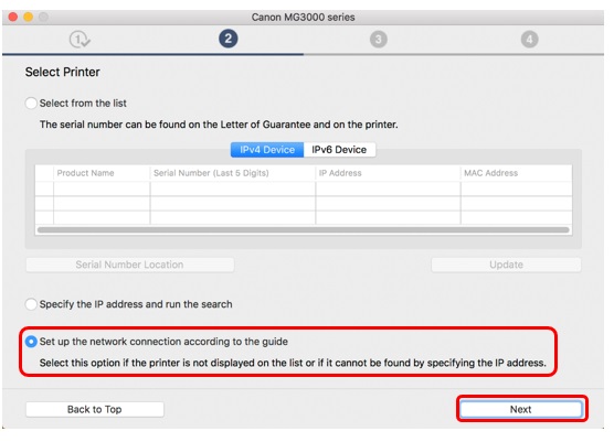 11. If you have already connected your printer to your network, select it from the list and click [Next] to start the software installation, then proceed to step 16.