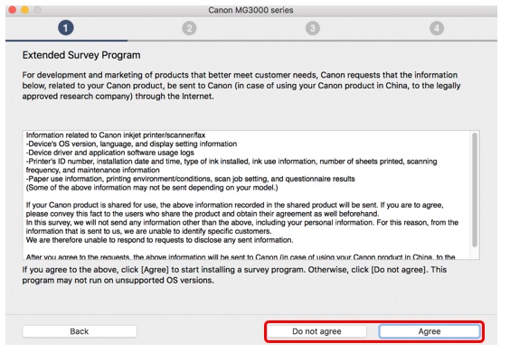 7. If you would like to take part in the extended survey program, click [Agree] , otherwise click [Do not agree] .