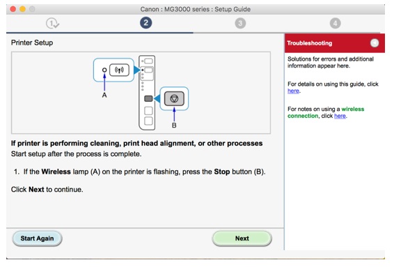 14. The setup guide will open and guide you through connecting your printer to your network using the easy wireless connect process.