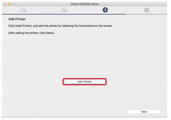 20. Select Canon "MG3000 series" "Bonjour Multifunction" from the list and click [Add] .