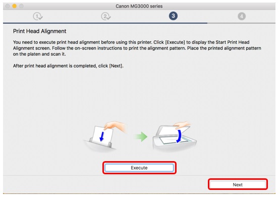 17. If this is the first time you are setting up your printer, it is recommended to perform print head alignment. Click [Execute] to start the process and follow the on-screen instructions.