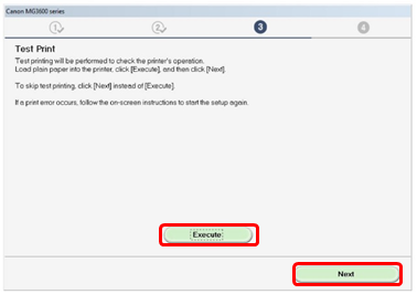 20. To perform a Test Print to confirm installation, click [Execution] otherwise click [Next].