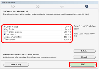 19. If you’re installing the printer for the first time Print Head Alignment is recommended after the installation is completed, click [Next]. Please refer to the user guide for further details.