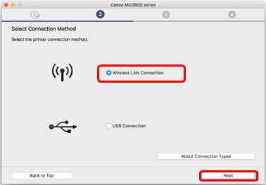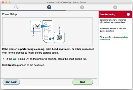 Please follow the on-screen instructions carefully to prepare your printer for connection. Only click next, when your printer corresponds with the example shown in the diagrams below.