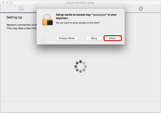 25. The following screen will appear, please wait while the printer is setting up. After adding your printer, the setup screen may be hidden by the browser. If this happens, click on the “Setup” icon