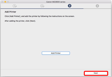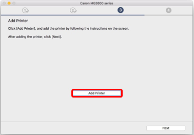 24. Wait until the Canon IJ Network has been discovered, then select the printer with "Canon IJ Network" listed in the "Kind" column and click [Add].