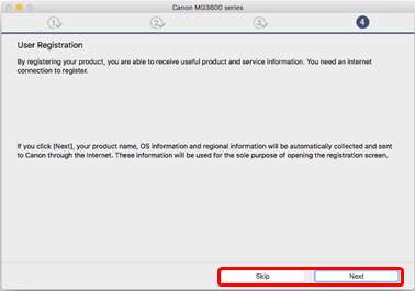 23. To register your printer, click [Next] (this will open in a web browser). Otherwise, click [Skip].