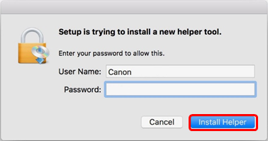 3. When the following screen appears, type your Password to allow the Helper Tool to be installed, then click on [Install Helper].