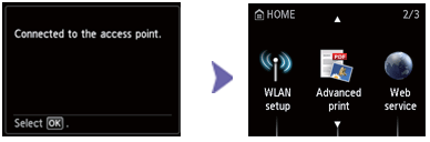 3. When the screen below [Connected to the access point] is displayed, Press the [OK] button to complete the setup.