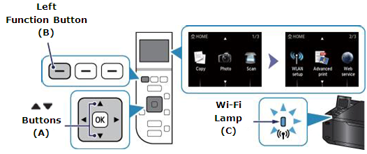 The (blue) Wi-Fi lamp on the printer flashes while searching for or connecting to the access point.