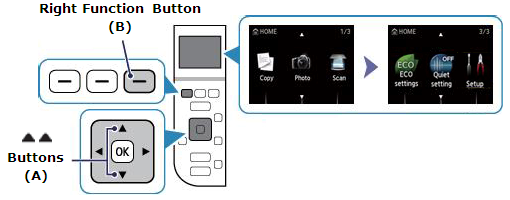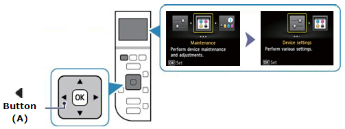 1. Press the [Home] Button (A) on the printer.