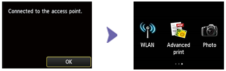 3. Tap [OK] on the printer, within 2 minutes, to connect to the access point.