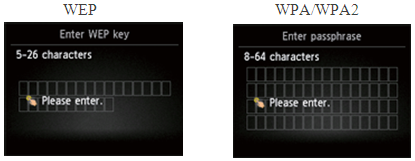 4. One of the screens below will be displayed on the printer, depending on which security method your access point is using.