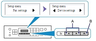 1. Use the arrow buttons (A) to select [Device settings] and press the [OK] button (B).