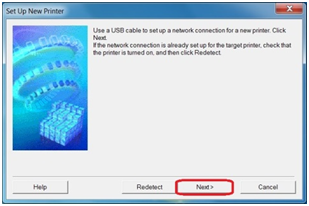 4. Ensure that your printer is turned on, make sure the power lamp is on and then click [Next].