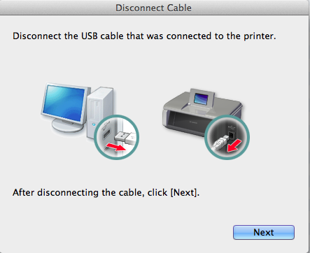 3. When the following screen appears, disconnect your printer from your computer and click [Next].