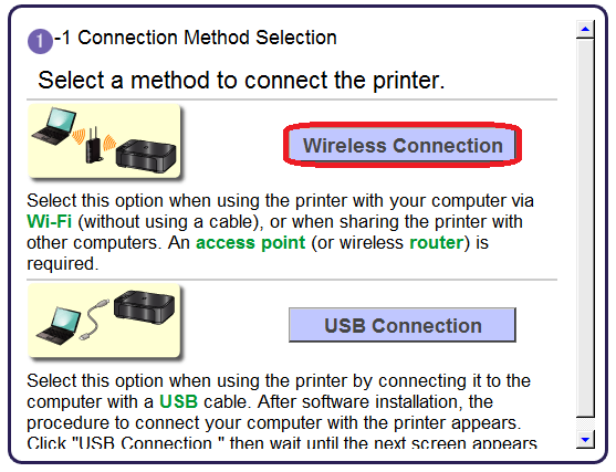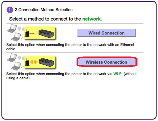3. Select [Wireless Connection] as a connection method.