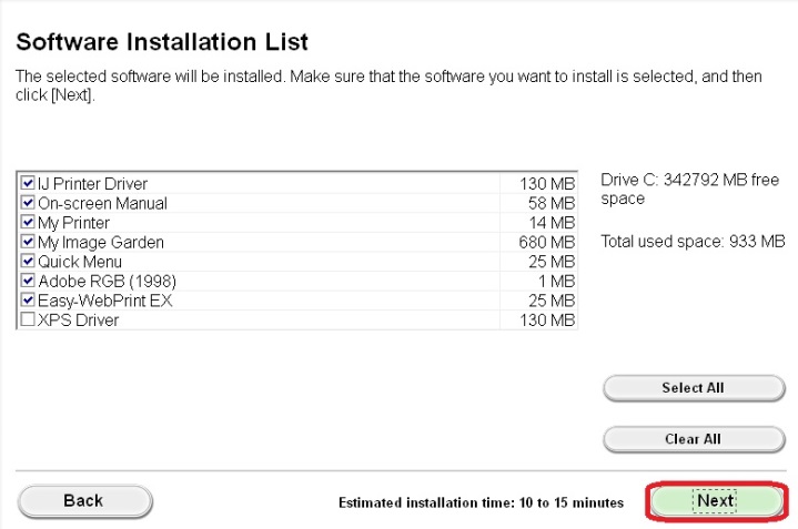 5. When the following screen appears, select the software you wish to install, and then click on [Next]. If you’re not sure which software you want to install at this stage, don’t worry, as you can always uninstall it at a later stage if you wish.